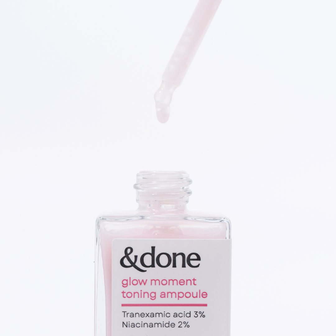 Whitening/Giming/Anti-oxidizing ampoule with 3% tranexamic acid, 2% niacinamide, and glutathione.